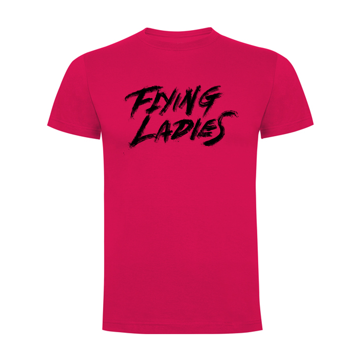 Camiseta unisex Flying Ladies, color rosa con estampación delantera logo.