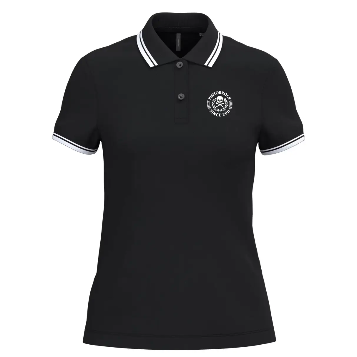 PintorRock polo entallado negro – rayas rojas 100& algodón con logo bordado en pecho izquierdo.