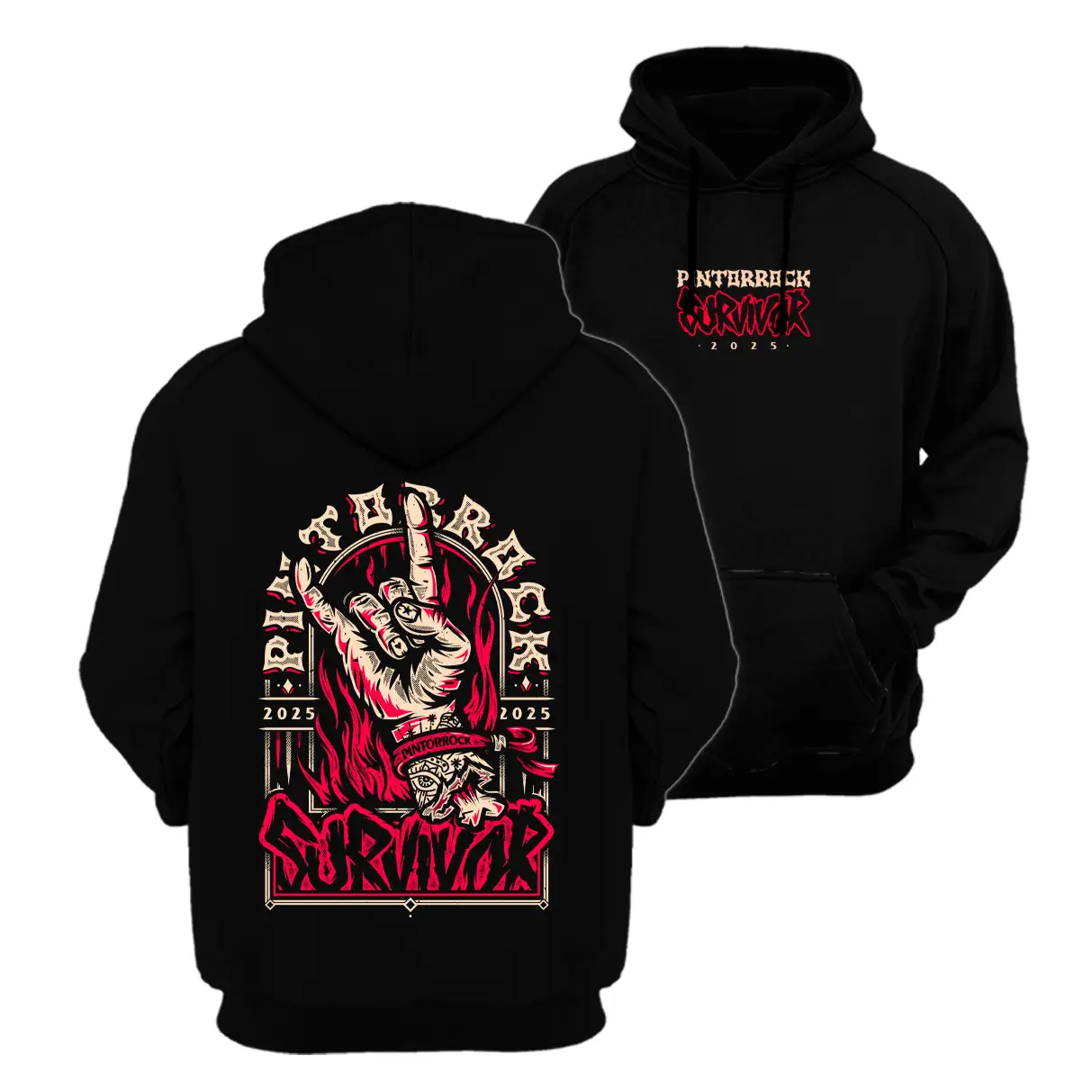 PintorRock Survivor sudadera capucha negra. Unisex, Negra, 275 gramos.